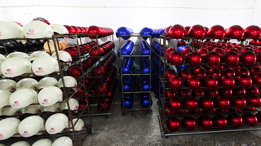 O policarbonato é o principal material usado na formação de capacetes termo-plásticos, cuja produção na China é gigantesca, pois além dos modelos de entrada, mais baratos, mesmo os modelos compósitos topo de gama utilizam policarbonato para as viseiras, condutas de ar, etc.