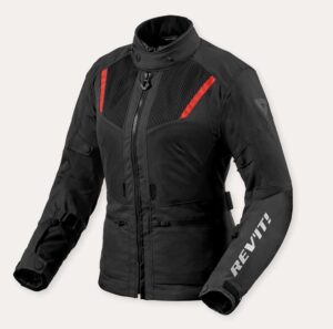 O blusão LEVANTE 2 H2O Ladies está disponível em preto e cinza-escuro nos tamanhos 34 ao 44, com um PVPR de 299.99€. Para mais informações e para um aconselhamento adequado, contacte um distribuidor autorizado REV’IT!.