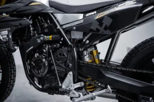 Segundo a Rough Crafts, o primeiro passo foi cortar o quadro de aço da Ténéré e substituí-lo pelo de alumínio da YZ450F, permitindo assim que os plásticos da moto de todo-o-terreno fossem instalados diretamente. O sistema elétrico foi “adaptado” e o depósito de combustível foi feito à mão e tem uma capacidade de pouco menos de 7 litros, 6,8L para ser mais preciso, permitindo que os plásticos personalizados sejam perfeitamente encaixados.