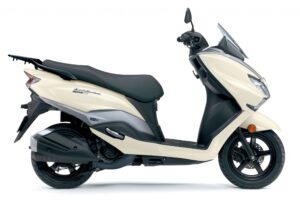 Para o modelo 2026, a Suzuki está a introduzir três novas variantes de cores: Branco Pearl Grace, Azul Stellar Metálico Fosco e Preto Brilho Brilhante. O objetivo é dar à Burgman Street 125EX uma aparência mais premium.