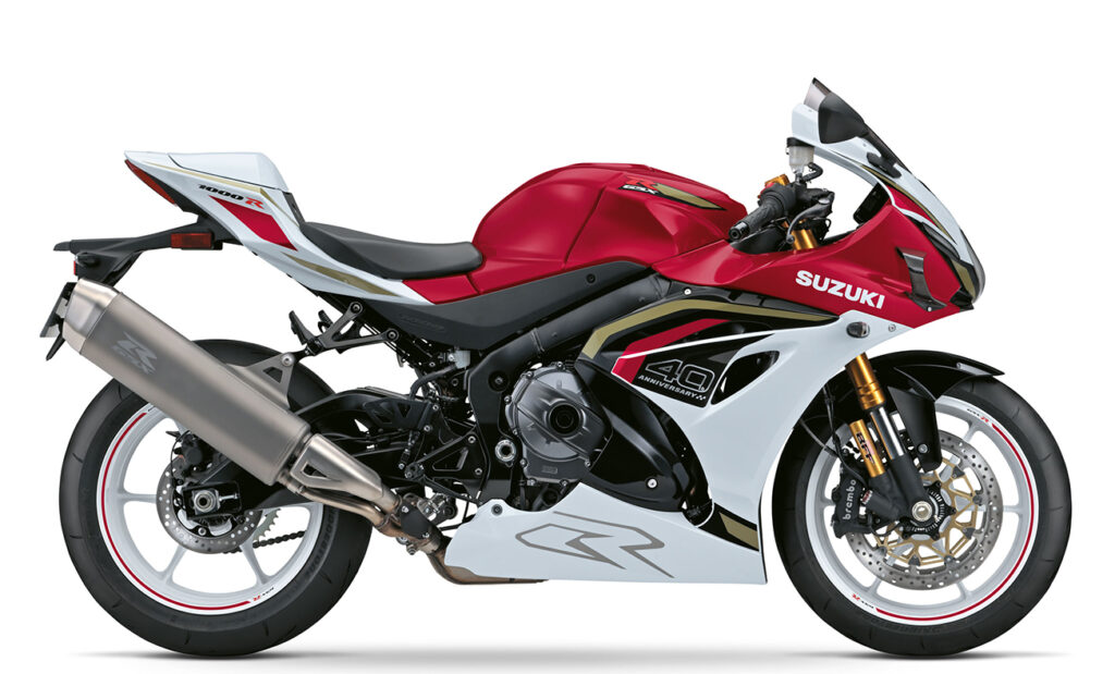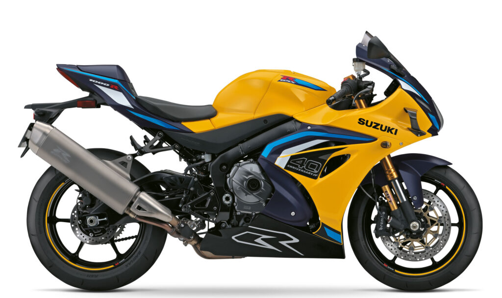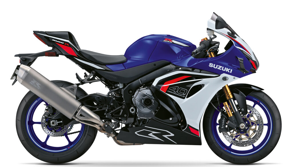 Esta edição especial evocativa dos 40 anos da GSX-R, destaca-se pela sua estrutura compacta, leve e agressiva, que envolve o condutor numa posição de condução desportiva e focada no desempenho. Viu ainda melhorada a aerodinâmica de forma a entregar maior estabilidade a alta velocidade, incluindo a adição de aletas em carbono prensado a seco e um design que não engana, e que transborda o ADN GSX-R!