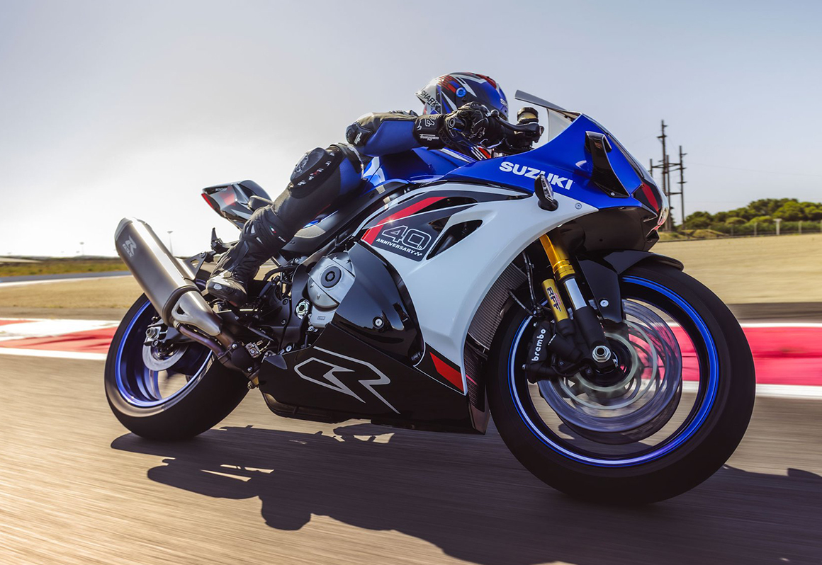 Esta edição especial evocativa dos 40 anos da GSX-R, destaca-se pela sua estrutura compacta, leve e agressiva, que envolve o condutor numa posição de condução desportiva e focada no desempenho. Viu ainda melhorada a aerodinâmica de forma a entregar maior estabilidade a alta velocidade, incluindo a adição de aletas em carbono prensado a seco e um design que não engana, e que transborda o ADN GSX-R!