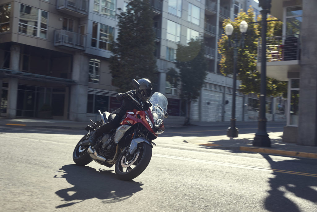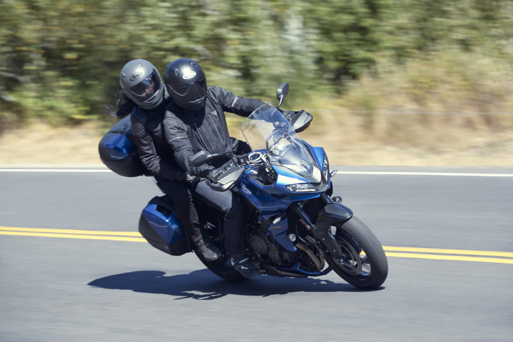O depósito tem capacidade para 17 litros de combustível, dando um grande alcance, enquanto que o ecrã elegante e aerodinâmico é ajustável em altura através de uma simples operação com uma só mão, permitindo ao condutor ajustar facilmente o nível de protecção contra o tempo e o vento. A capacidade ‘touring’ é ainda melhorada com os suportes discretamente integrados para suportar a mala traseira sem perder o estilo limpo da moto. Para capacidade de bagagem adicional, está disponível na lista de acessórios uma top case de 47 litros, que pode acomodar com segurança dois capacetes de face inteira. Os alforges e a top case também podem ser codificadas por cores para combinar com o corpo da moto.