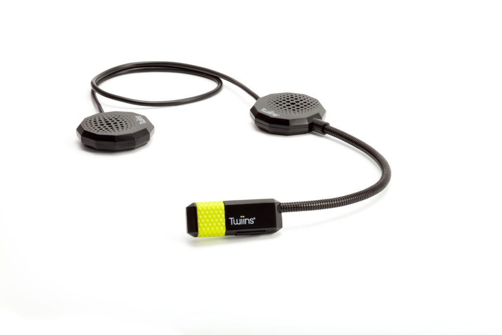 Os dispositivos inteligentes da Twiins integram-se perfeitamente em todos os tipos de capacete, transformando-os em centros de comunicação e minimizando as distrações na estrada. Com o Twiins, manter-se ligado é tão natural como a sua próxima aventura. Como exemplo um kit duplo de comunicação, que custa cerca de 249€, traz: 2 headphones Twiins®, 4 Hook-and-4 ganchos de fixação, 4 Fillers, 1 Botão Push-to-talk Smart Button, 1 fixador Universal Grip, 1 tira de borracha para fixação e 1 cabo de carga USB.