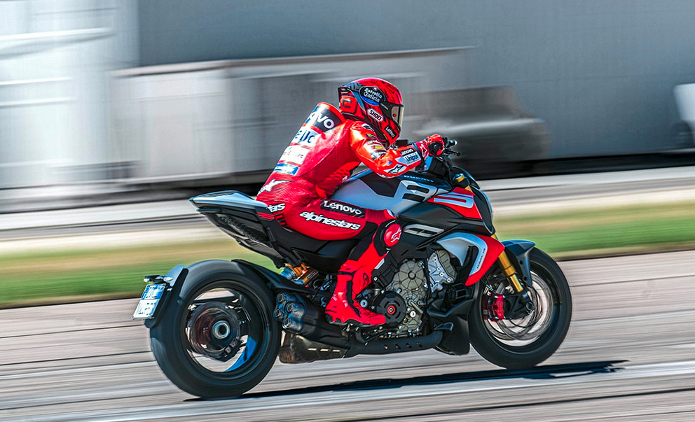 O feito foi conseguido por uma combinação de fatores, incluindo um tal de Marc Márquez sentado a bordo, mas principalmente através dos melhoramentos técnicos introduzidos no modelo: uma caixa de velocidades otimizada, um amplo conjunto de ajudas ao condutor, um pneu traseiro gigantesco e, mais importante, a adição do motor Desmosedici Stradale da Ducati, em plena potência, retirado da Panigale V4 S de 34.725€.