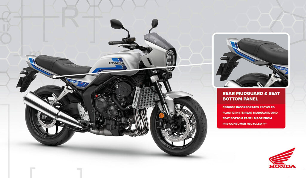 Como o PP possui propriedades conhecidas, pode ser ajustado para ter as mesmas características físicas do material virgem, evitando também o risco de contaminação com substâncias químicas regulamentadas. A X-ADV e a Forza 750 lideram a aplicação, cada uma com mais de 15 peças feitas a partir deste material, enquanto a CB1000F 2026 é o modelo mais recente a juntar-se à lista, com o guarda-lamas traseiro e o painel inferior do assento fabricados em PP reciclado.